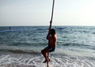 Sur 300 m de plage de sable presque blanc on est six maximum, helene et moi seulement la plus part du temps.